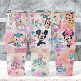 Character Squad Disney Cartoon 30oz or 40oz Quencher Stainless Steel Tumbler With Handle, Best Gift Idea NVA