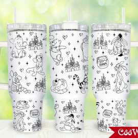 Disney Winnie The Pooh Characters Pooh and Friends 30oz or 40oz Tumbler with Handle, Birthday Anniversary Tumbler Gift HFN