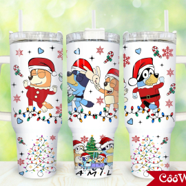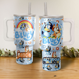 Bandit and Bingo Heeler Bluey Cartoon Custom Quencher 30oz or 40oz Stainless Steel Tumbler With Handle HG