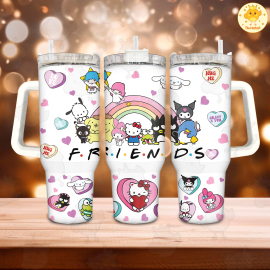 Hug Me Friends Hello Kitty Cats Valentine 30oz or 40oz Quencher Tumbler, Valentine Cartoon 40oz Tumbler, Pink Cat Tumbler, Valentine Movies Gift Tumbler HFN