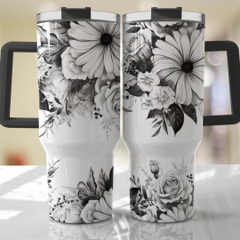 Black and White Floral Seamless 30oz or 40oz Tumbler HG