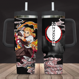 Black Kyojuro Rengoku Kimestu no Yaiba Demon Slayer Anime Custom Quencher 30oz or 40oz Stainless Steel Tumbler With Handle HG