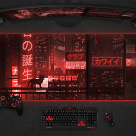 Cat Red Tokyo Street Japanese RGB Led Mouse pad Gaming, Kawaii Mouse pad Anime HG