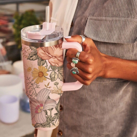 A Watercolor Boho Flowers 30oz or 40oz Tumbler with Handle Mother’s Day Gift Boho Floral Tumbler Gift For Her Him Birthday Gift LN newchi
