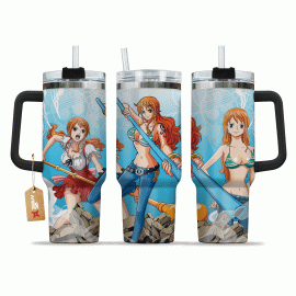 Nami One Piece Anime Custom 30oz or 40oz Quencher Stainless Steel Tumbler With Handle, Best Gift Idea NVA, Best Gift Idea NVA