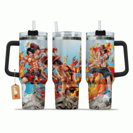 Portgas D. Ace One Piece Anime Custom 30oz or 40oz Quencher Stainless Steel Tumbler With Handle, Best Gift Idea NVA, Best Gift Idea NVA
