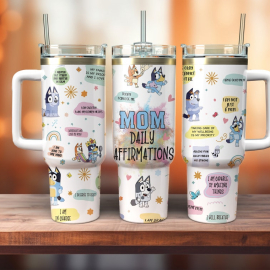 Mom Daily Affimation Bluey Dog Cartoon 30oz or 40oz Quencher Tumbler LN Bluey And Friends