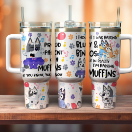 Muffin Heeler Bluey Cartoon Custom Quencher 30oz or 40oz Stainless Steel Tumbler With Handle HG