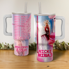 Nicki Minaj Pink Friday 2 Tour Music Custom Stanley Quencher 40oz Stainless Steel Tumbler HG With Handle