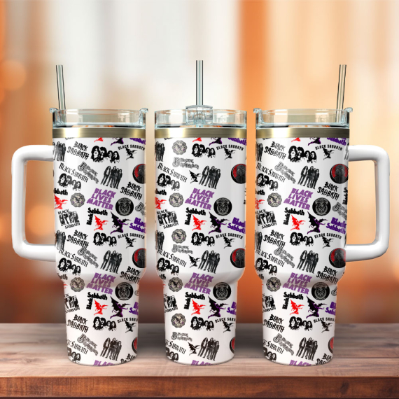 Black Sabbath Rock Band Custom 30oz or 40oz Quencher Stainless Steel Tumbler With Handle, Best Gift Idea NVA