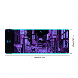 Anime Gifts, Purple Japanese Anime Night City Led Wireless Charging Mouse Pad, Kawaii Anime Led Desk mat, Anime Stuff, Gamer Mouse pad, Laptop Pad Mat, Keyboard pad mat, Long Mouse pad HG