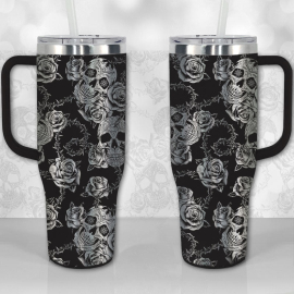 Sugar Skull and Roses Full Wrap Pattern 30oz or 40oz Tumbler with Handle, Best Gifts NVA