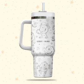 Mike Monster Inc Disney Cartoon 30oz or 40oz Quencher Stainless Steel Tumbler With Handle, Best Gift Idea NVA