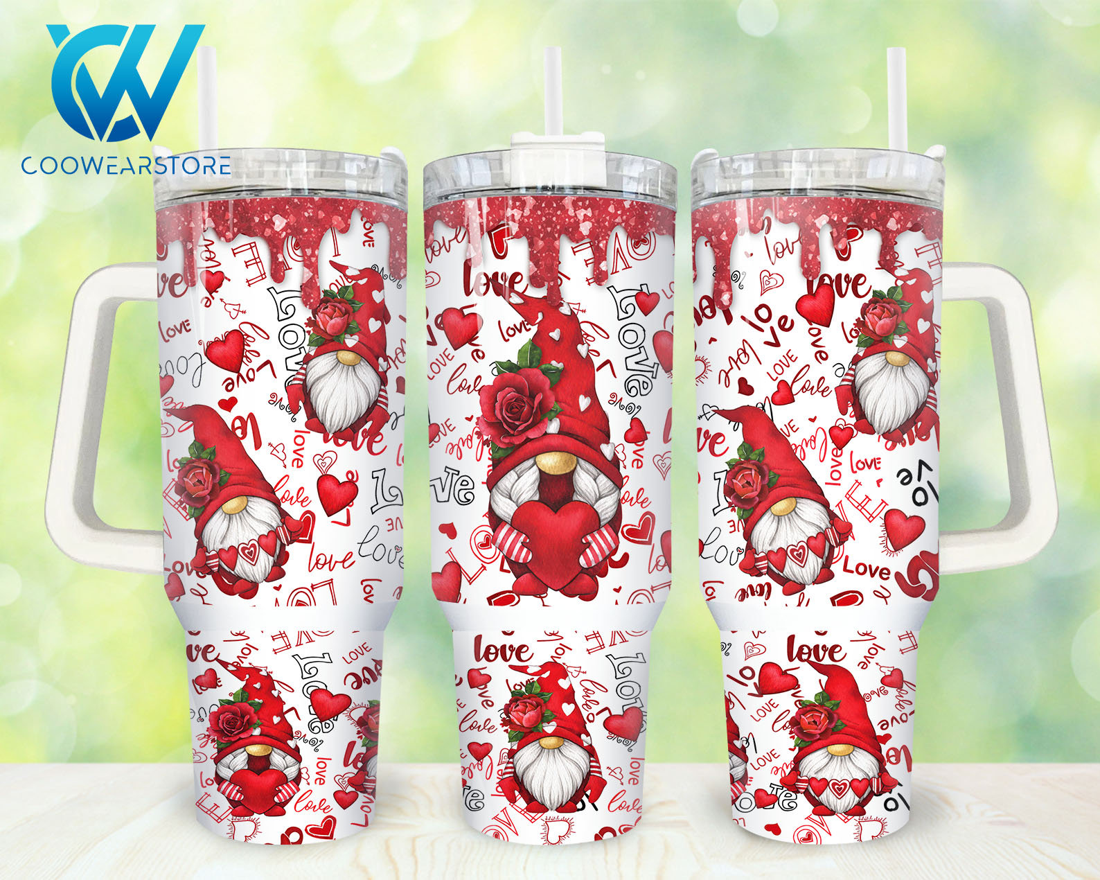 Gnomes Valentines 30oz or 40oz Tumbler with Handle, Birthday Anniversary Tumbler Gift HFN, Happy Valentines Day Tumbler, Couple Love Tumbler