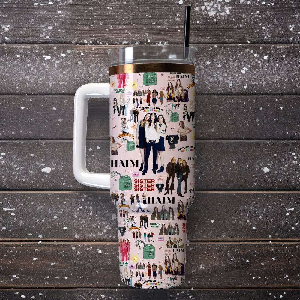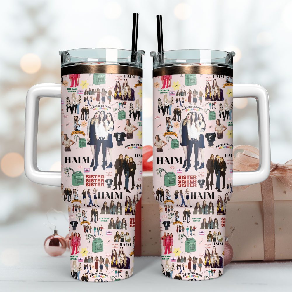 Haim Sisters Rock Band Custom Quencher 30oz or 40oz Stainless Steel Tumbler With Handle, Best gifts for Friend Family NVA