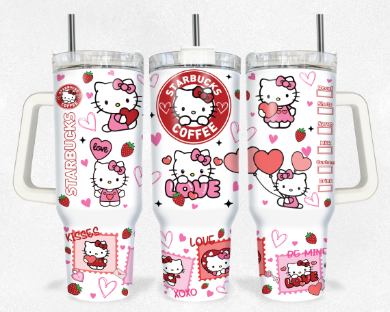 Hello Kitty Coffee Sanrio Cartoon Custom Quencher 30oz or 40oz Stainless Steel Tumbler With Handle HG