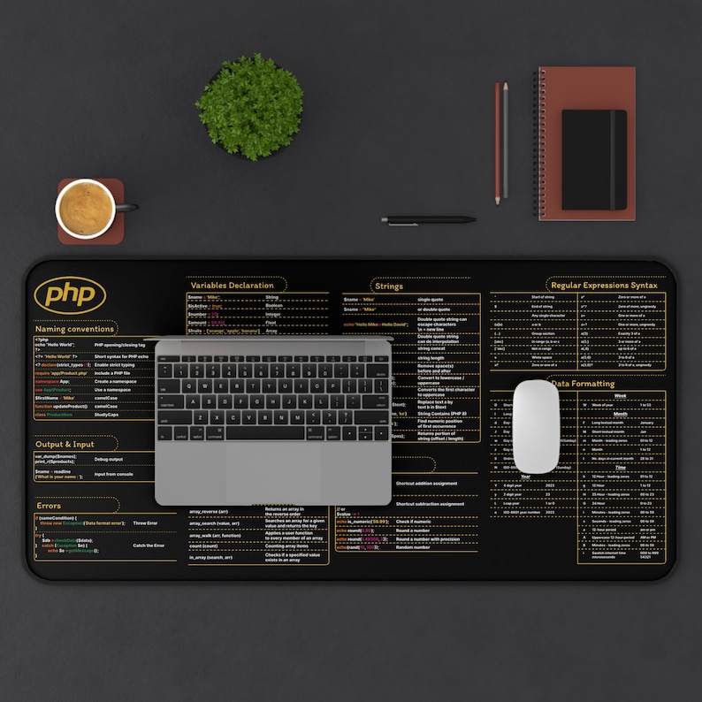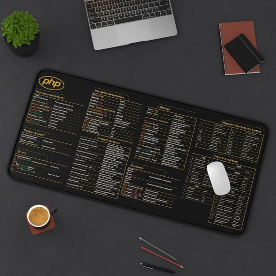 PHP Cheat Sheet Desk Mat for Programmers, Developer, Desk Accessories, Desk Pad, Gift Coworker, Quick Key, Large Anti-Slip Keyboard Pad Mouse Mat HG