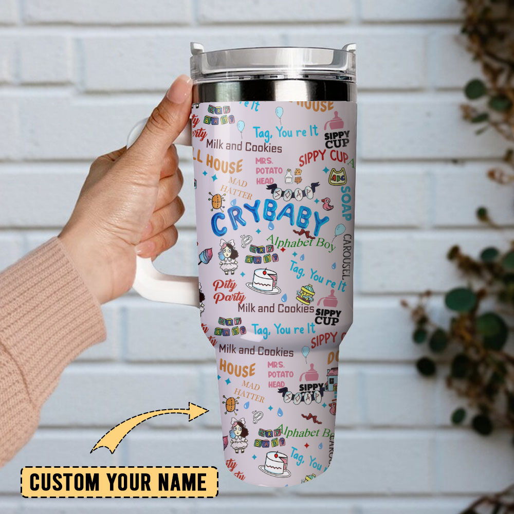 Pinky Crybaby Anime Custom Quencher 30oz or 40oz Stainless Steel Tumbler With Handle, Best gifts for Friend Family NVA