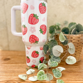Strawberry 30oz or 40 oz| strawberry 40 oz tumbler | 40 oz tumbler| travel mug| Kawaii mug HG