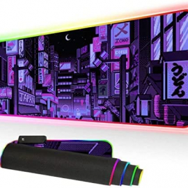 Purple Japanese Anime Night City Extra Large Thick RGB Led Mouse pad Gaming Kawaii Anime Stuff Gamer Mouse Mat Led HG